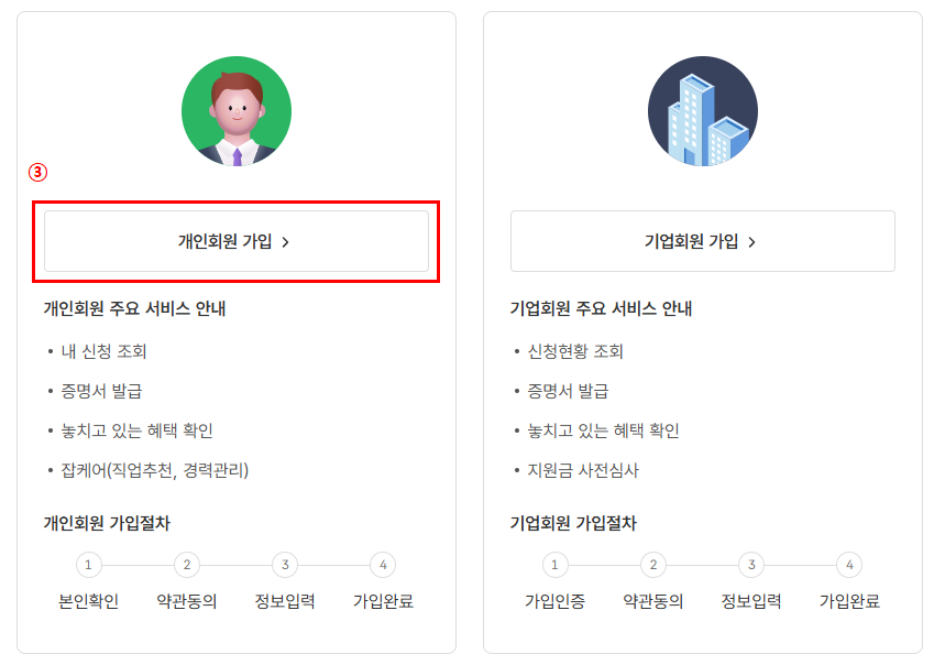 [ 1. 신청자격 확인 ]부터 ~ [ 5 발급신청 완료 ]까지 개인별로 내용이 상이하니