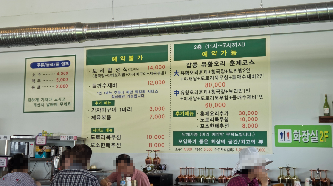 대표적으로 [보리밥 정식]과 [유황오리훈제]가 있는데