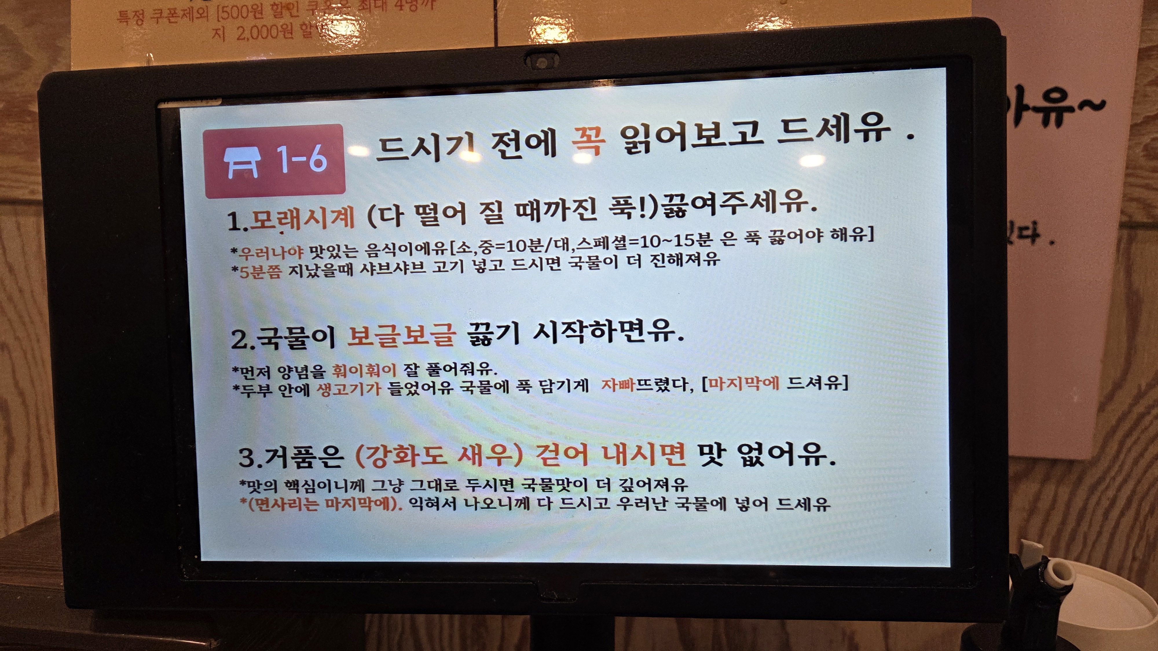사장님만의 꿀팁도 테이블마다 비치되어있어서