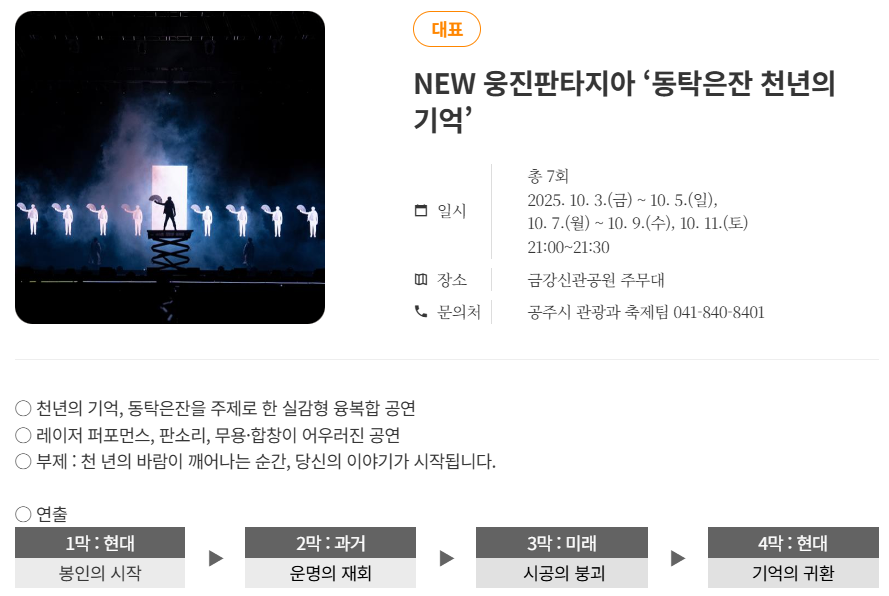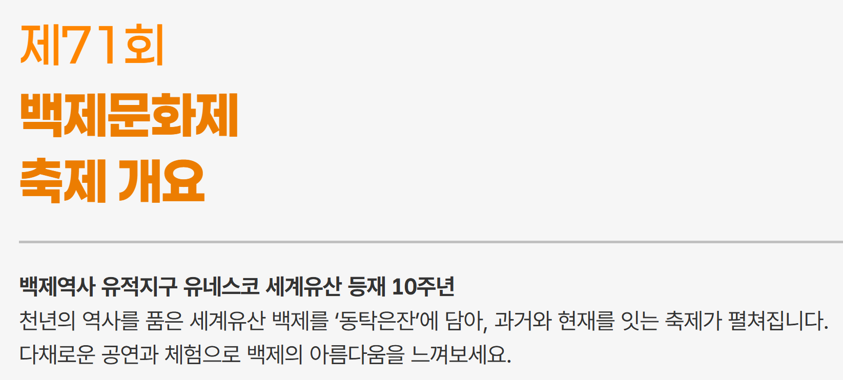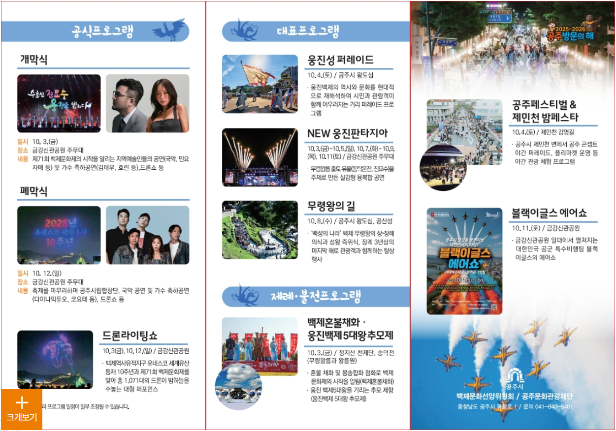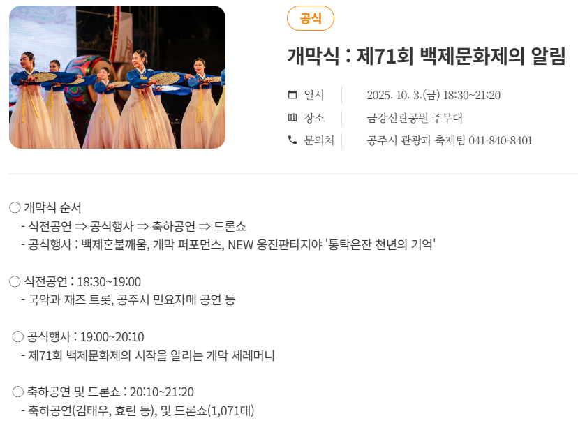 - 주최/주관 : 공주시 / 공주시백제문화선양위원회 및 (재)공주문화관광재단