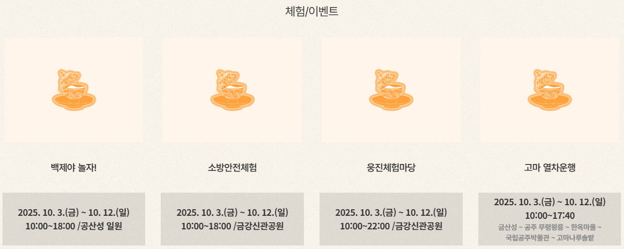 | 체험 프로그램 | 전통 공예, 복식 입어보기, 활쏘기 등 백제 문화 관련 만들기 및 체험 프로그램 운영 |