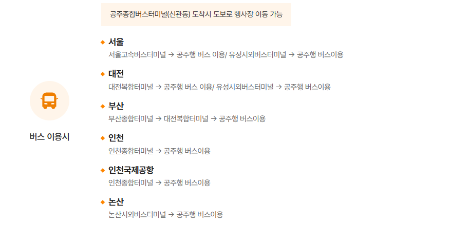 ▸ 공주 내 숙박시설(호텔, 펜션, 게스트하우스) 예약은 가능하면 몇 주 전 준비