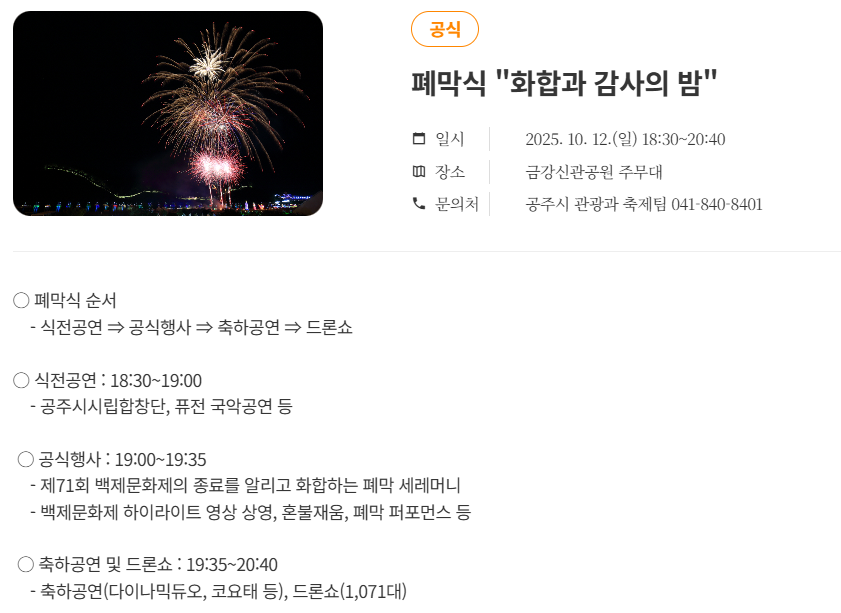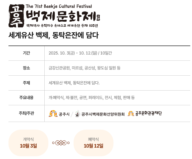 2025년 공주 백제문화제 일정 및 상세정보