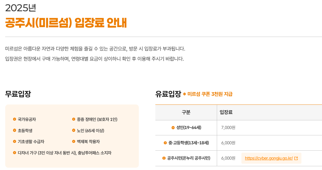 - 입장료 : 기본적으로 무료이며, 일부 체험 및 유료 프로그램 있음