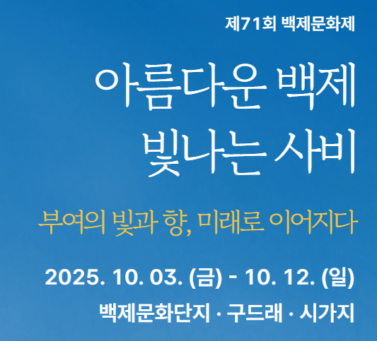제71회 백제문화제로 여러분을 초대합니다. 2025. 10. 03. (금) - 10. 12. (일) 백제문화단지 · 구드래 · 시가지