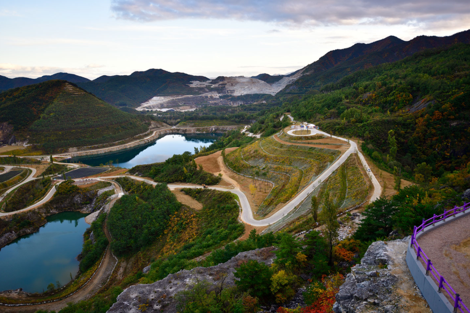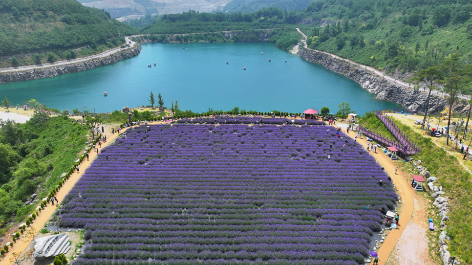 “광산이 남긴 상처 위에 피어난 보랏빛 정원과 에메랄드 호수.”