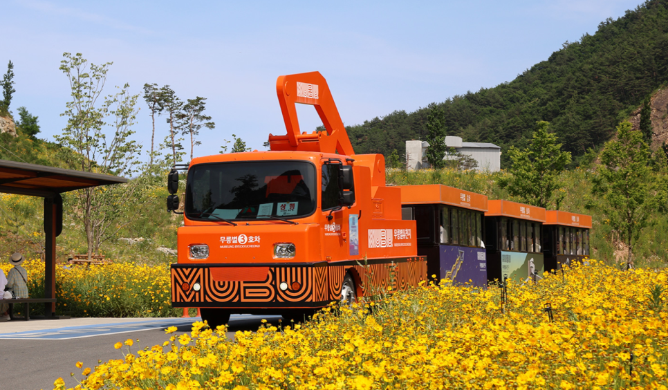 방문자센터에서 놀이기구같은 셔틀을 타고